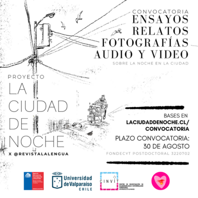 El próximo sábado 5 de abril a las 17:30 horas, en el Centro Comunitario Cerro Concepción, se llevará a cabo el evento de lanzamiento de la convocatoria “La ciudad de Noche. Lecturas de la experiencia nocturna”. Este encuentro marcará el cierre de un proceso en el que recopilamos y visibilizamos diversas experiencias sobre la vida … “La ciudad de Noche. Lecturas de la experiencia nocturna” – Lanzamiento y conversatorio