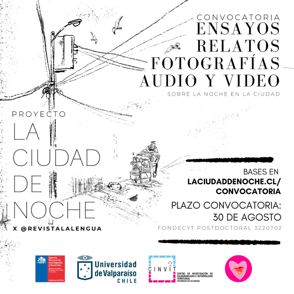 Con el fin de poner en discusión y abrir el abanico de experiencias sobre la práctica cotidiana de la calle como espacio compartido, esta convocatoria invita a toda persona que quiera comunicar su experiencia en la calle en la noche a través de relatos, cuentos, videos, notas de voz, o cualquier otra forma de producción medial. De esta manera iremos configurando un meta relato en torno a la vida en la ciudad.